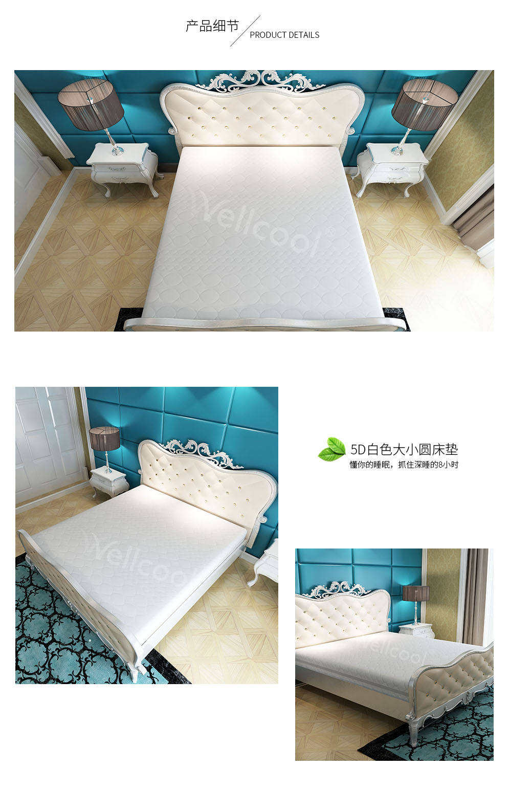 | 品名:5D白色大小圓床墊 |
