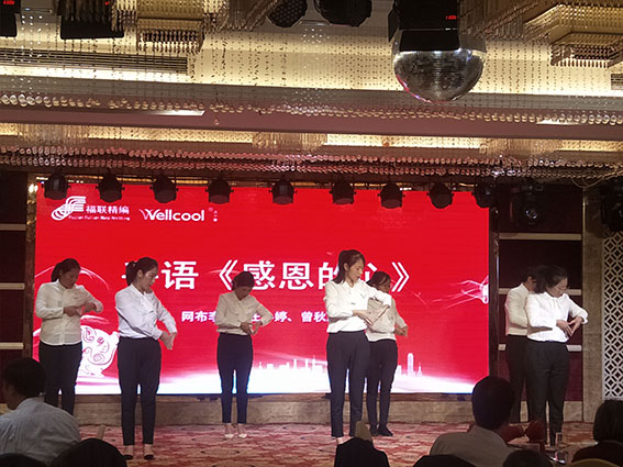 晚會的尾聲是重磅的壓軸節目,沃爾康全體員工齊聚在舞臺上,共同唱著愛的奉獻