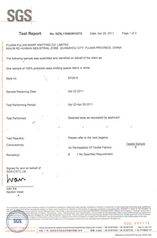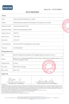 公司首家建立中國3D織物檢測標準Q/FLJB001-20007、產品獲得了OeKe-TEX、SGS、Intertek、3C等系列認證。設立國內先進的檢測室,擁有各種檢測設備,完成從原料到成品的強度、耐疲勞度、環保程度等多項指標的品質監測和管理。